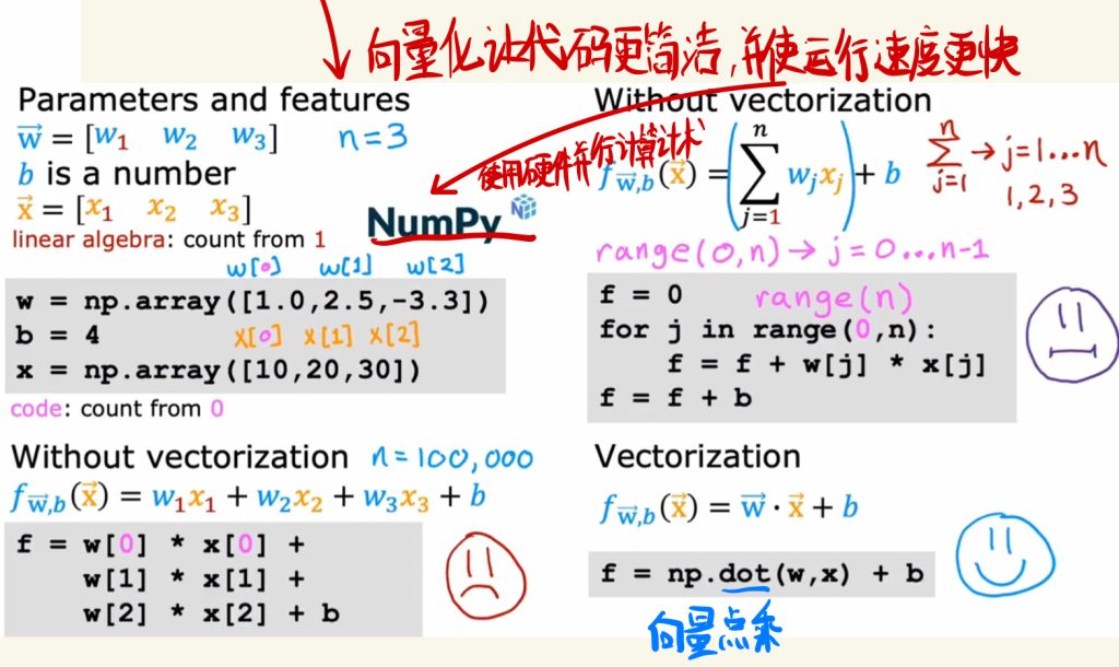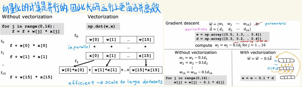 因为向量化的计算是并行的,因此代码运行上更简洁高效。
