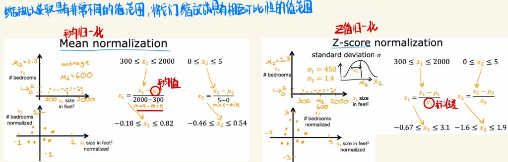 下图是平均归一化和Z值归一化的示例。