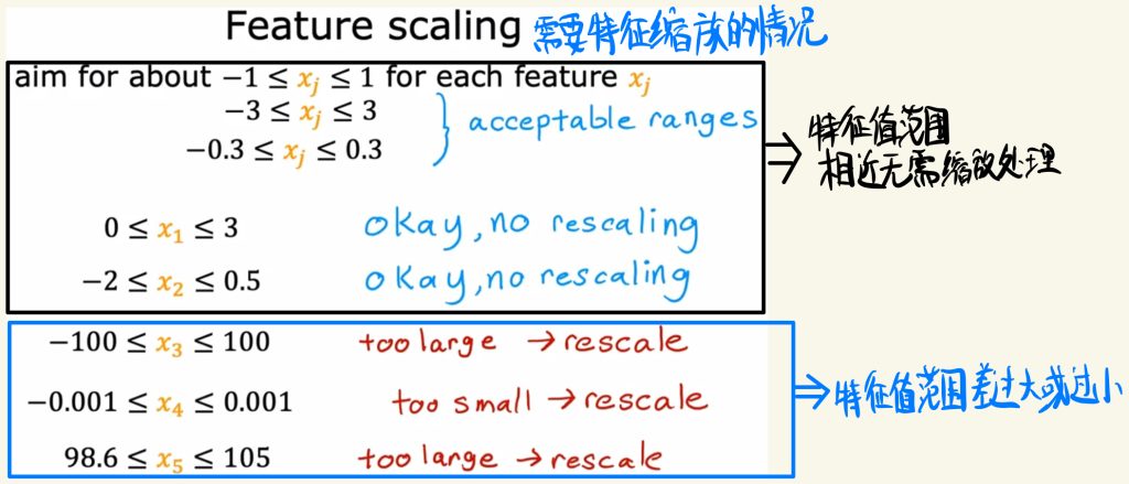 特征值范围差过大或过小就需要进行缩放处理。