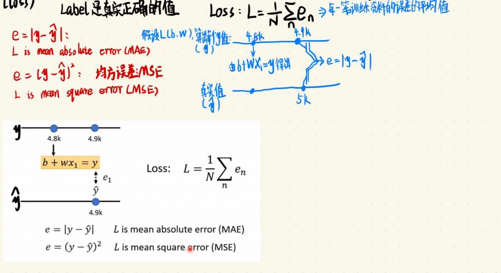 上面就是对于Loss的一些解释,值得关注的就是上面提到的新名词MAE和MSE,这里的MSE指的就是均方误差的意思。
