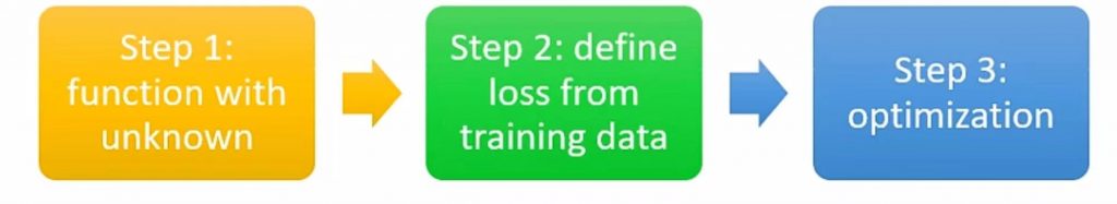 那么到这里就可以来介绍机器学习的三个步骤了:
