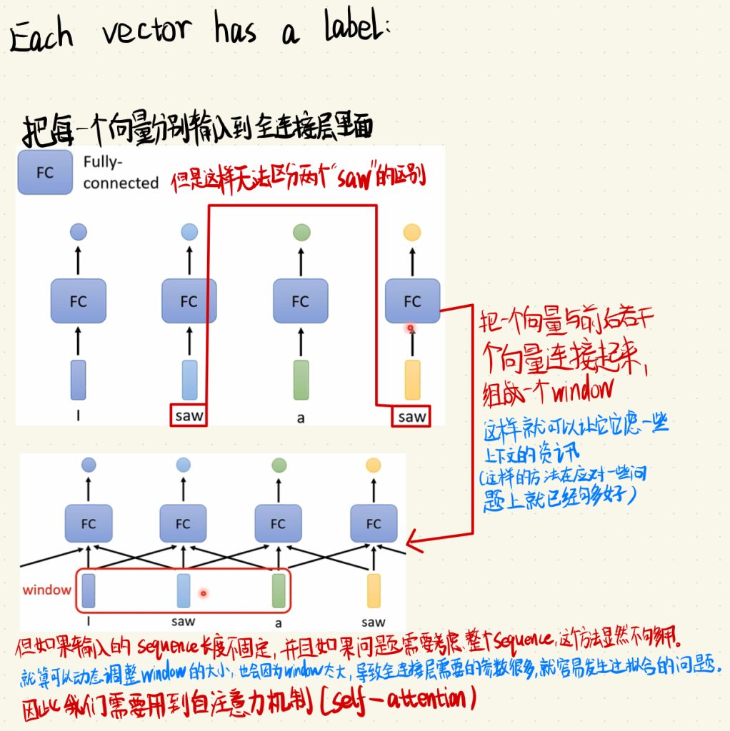如上图这样子,我们把一个向量与前后若干个向量连接起来组成一个window。这样就可以让一个模型考虑一些上下文的咨询。实际上在这一步,我们就可以应对大部分简单的问题了。