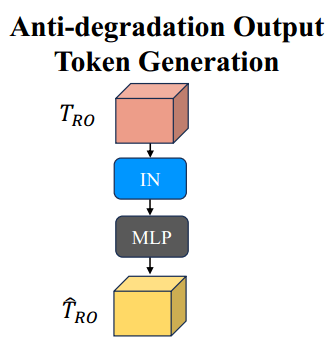 抗退化输出token生成模块 (Anti-Degradation Token Generation):生成对退化不敏感的特征token。它利用了一个自注意力机制来捕捉图像中的全局信息,从而生成对图像退化具有鲁棒性的特征。