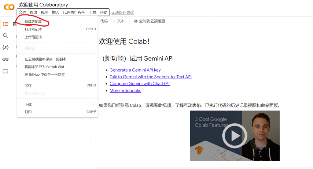 刚开始进入Colab的时候会有谷歌官方的使用提示。