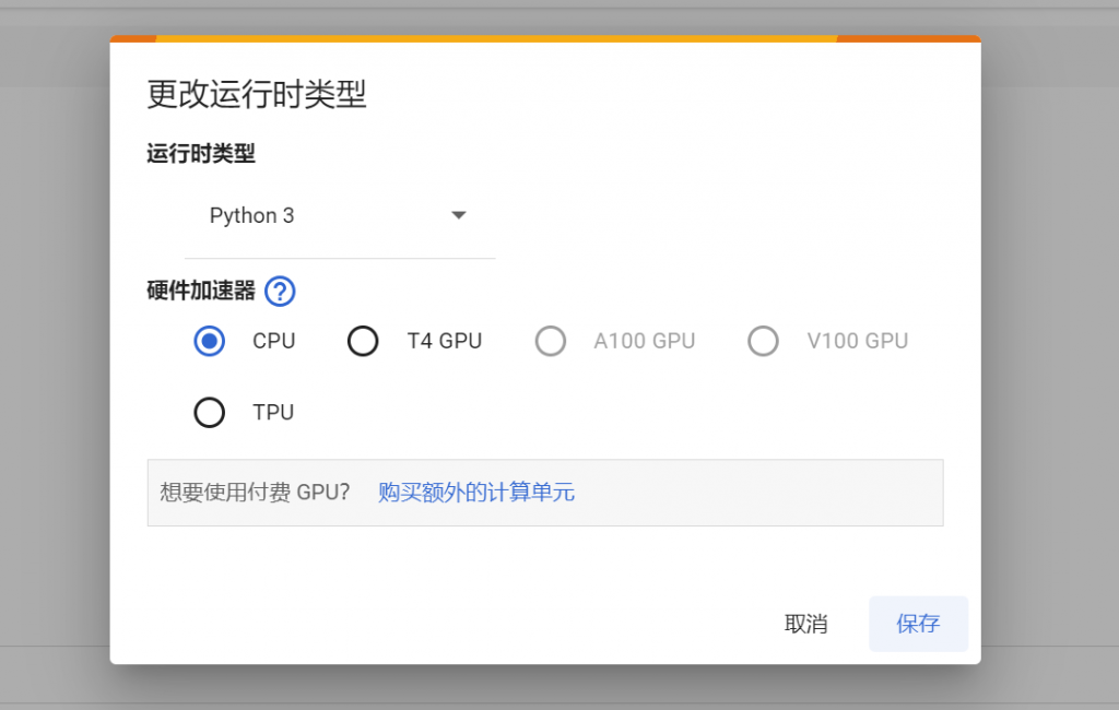 下面对如何使用GPU来运行程序,请注意,你必须在程序开始运行之前选择是否用GPU运行。虽然谷歌有提供一些免费的GPU资源,但是有一些好的GPU依旧是要收费的,不过我们学习阶段也用不到就是了,只需要用免费的GPU或者用CPU跑程序就可以了。