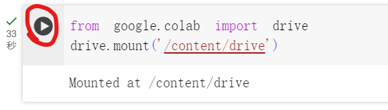 点击上图红圈的地方就可以运行代码了,运行完这段代码之后,会弹出谷歌账号的登录授权,授权完成之后我们就连接成功了谷歌的云端硬盘了。将文件放在云端硬盘里面之后,结束程序运行也不会让文件消失。
