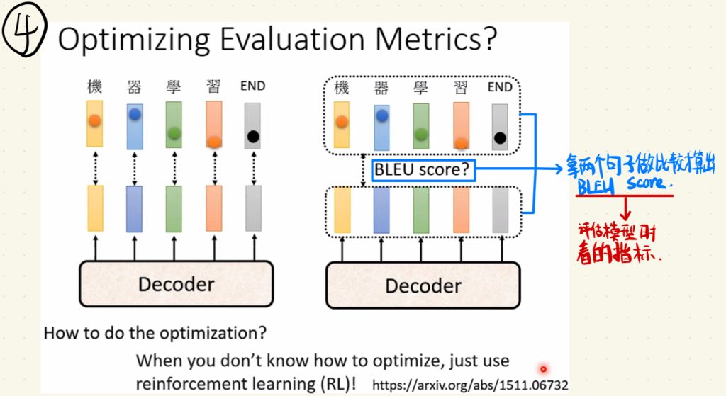 就是在评估模型的时候,我们会把拿两个句子做比较才算出的BLEU score作为评估模型的指标。