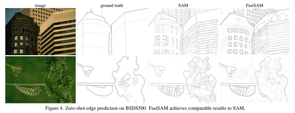 FastSAM使用SA-1B数据集2%的部分进行训练,默认训练次数epoch为100次。并且在边缘检测、对象建议生成(Object Proposal Generation)、实例分割和使用自由格式文本输入分割对象四个模块进行验证。