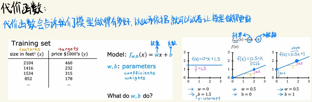 这里介绍了linear model里面的参数w和b。w是权重,b是系数。
