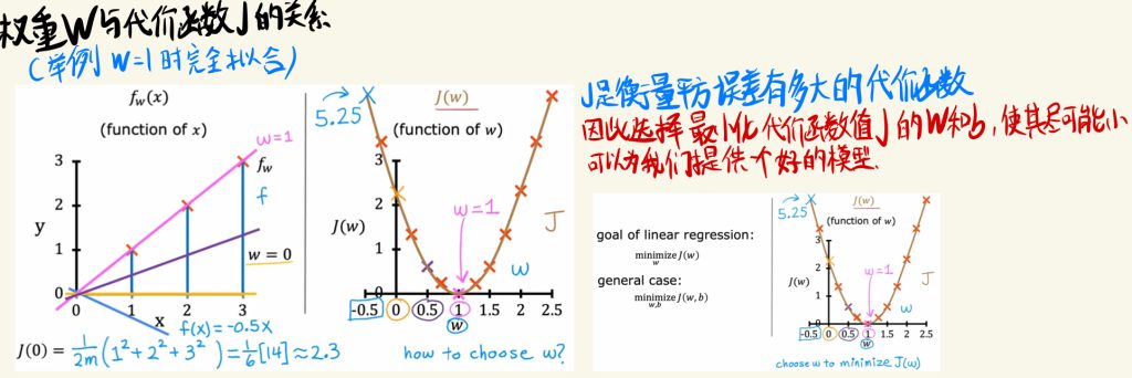 J是衡量平方误差有多大的代价函数,因此选择最小化代价函数值J的w和b,使其尽可能小,这样可以为我们提供一个好的模型。