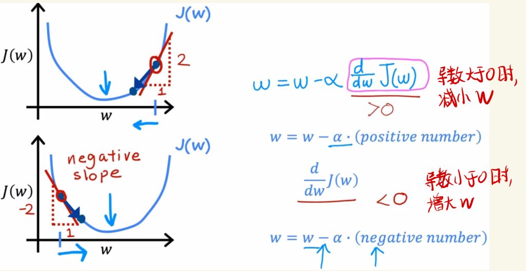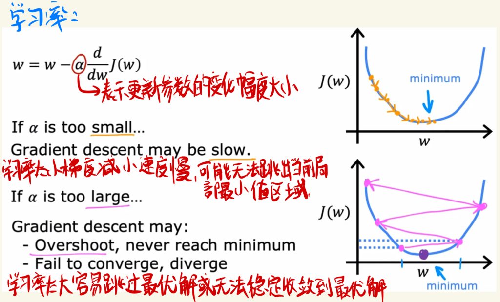 红色圈里的α表示学习率,粉色框里面的表示导数。