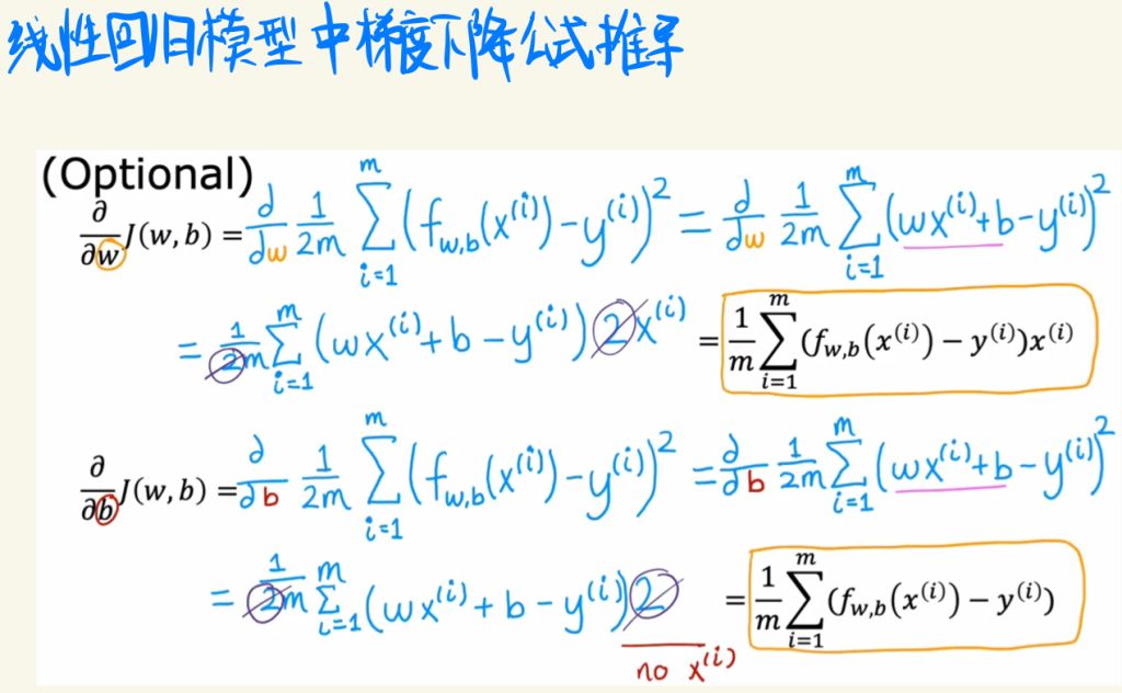 下面是线性回归模型当中的梯度下降公式的推导过程: