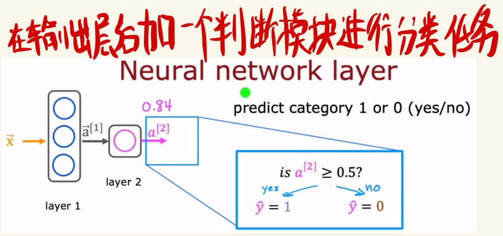 在神经网络的输出层后加一个判断模块可以进行分类任务。