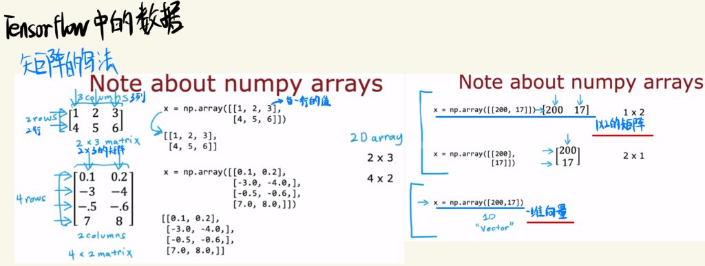 下图是关于TensorFlow中的数据写法,下图是numpy的矩阵写法: