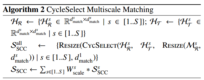 CycleSelect模块中进行特征匹配空间循环一致性约束。主要的做法为: