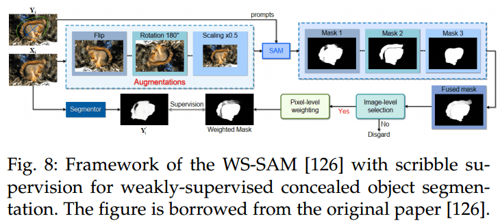 WSSAM利用 SAM 进行弱监督隐蔽物体分割,解决了使用稀疏注释数据分割与周围环境融为一体的物体的挑战。