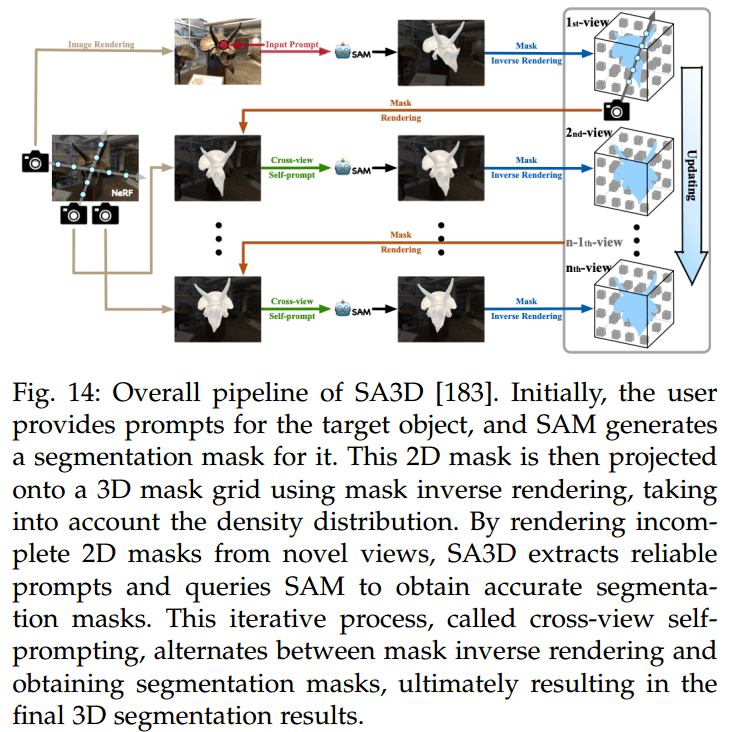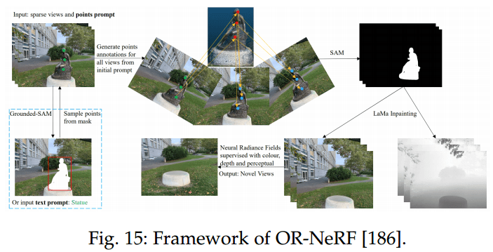 提出了一种新的对象移除设计 ORNeRF,它使用单个视图上的点或文本 prompt 从 3D 场景中移除对象。通过使用点投影策略将用户注释快速传播给所有视图,该方法使用比以往工作更少的时间实现了更好的性能。