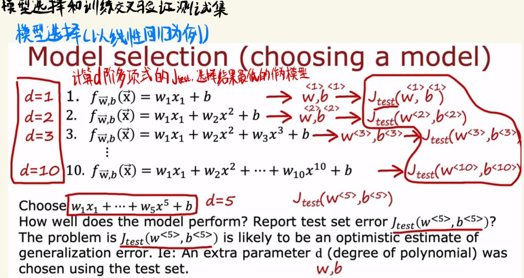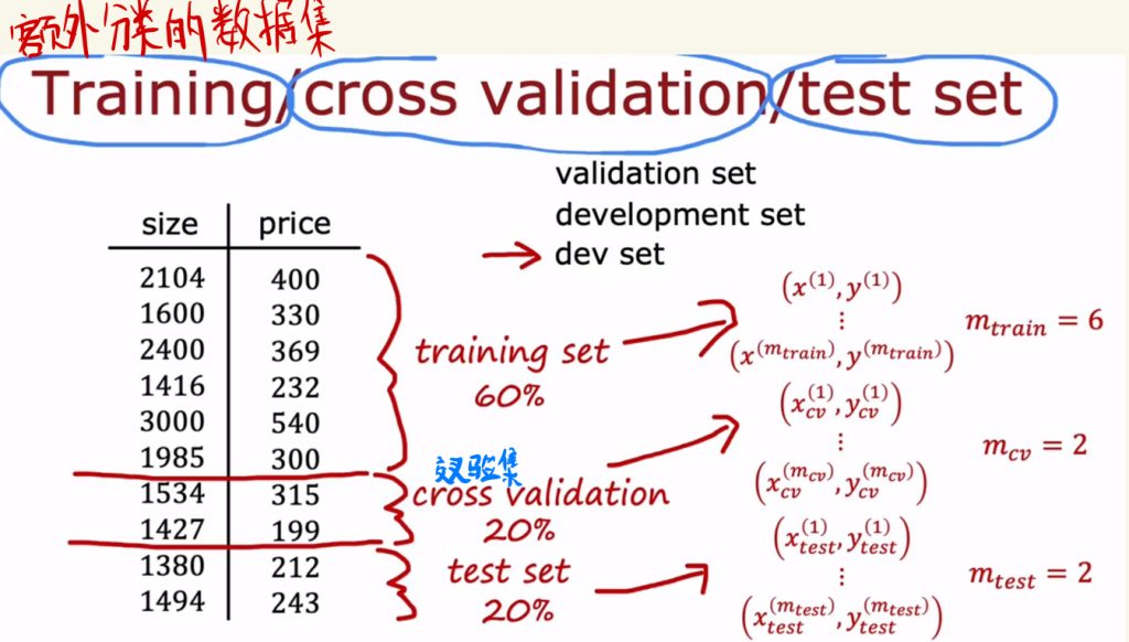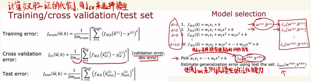 然后我们计算交叉验证的代价J,用cv的J来选择模型。
