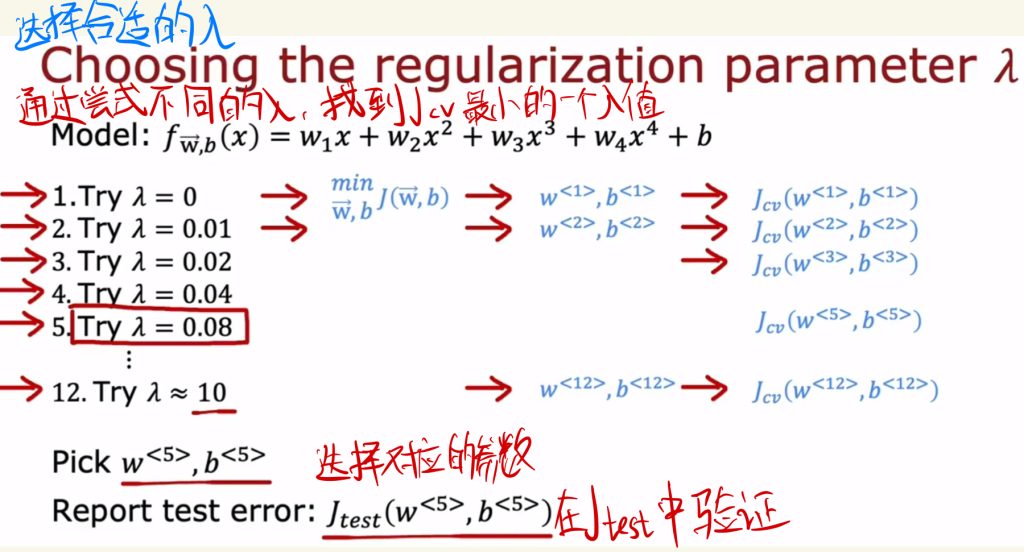 做法就是尝试不同的λ,找到cv的J最小的一个λ值。