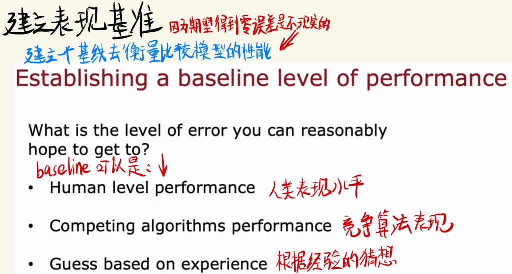一般baseline可以是:人类表现水平、竞争算法表现和根据经验的猜想。