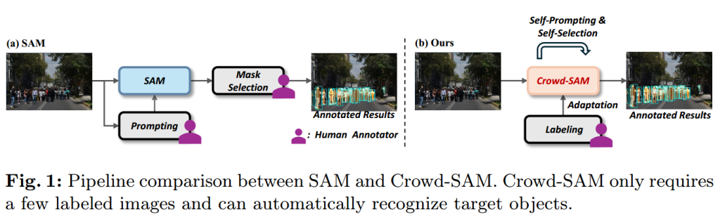 与SAM的原方法相比,Crowd-SAM需要更少的人工处理,只需要很少一部分图像标签就可以自动识别目标物体。