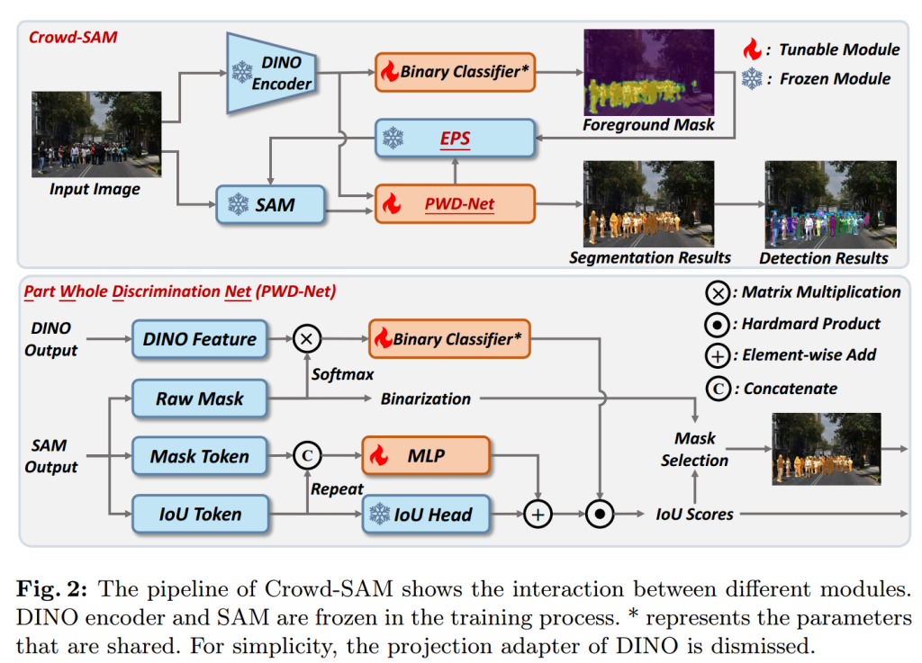 Crowd-SAM主要有两个部分:高效提示采样器(Efficient Prompt Sampler, EPS)和部分-整体辨别网络(Part-Whole Discrimination Network, PWD-Net)。