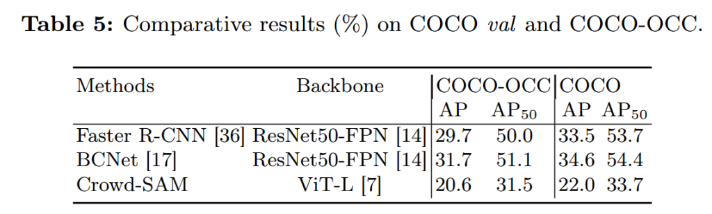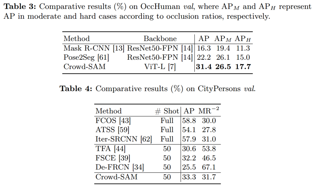 在少样本对象检测器中,Crowd-SAM显著优于现有方法,特别是在拥挤和遮挡场景中表现出色。并且在稀疏的场景中任然具有竞争力。