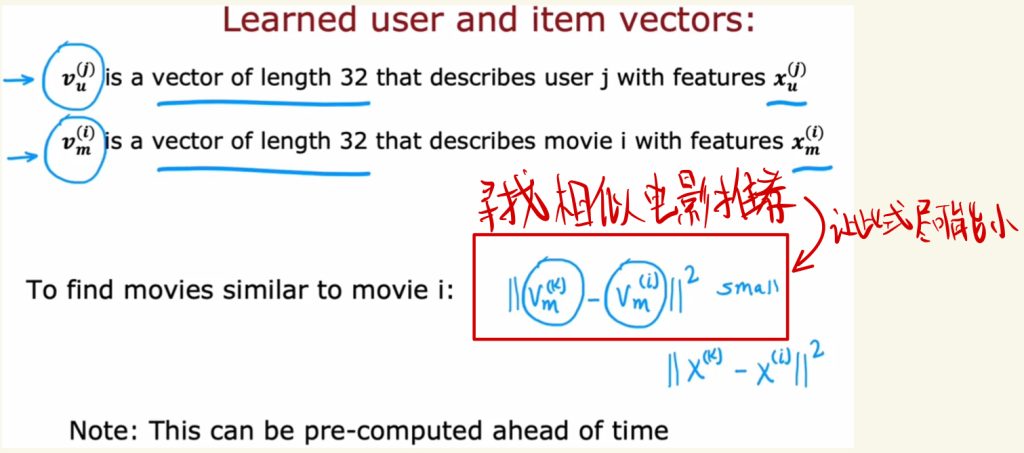 应用起来,比如寻找相似电影推荐,就可以让下面这个计算举例的式子的值尽可能小。