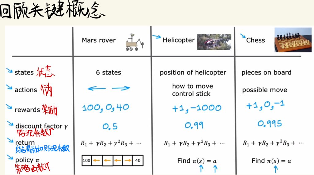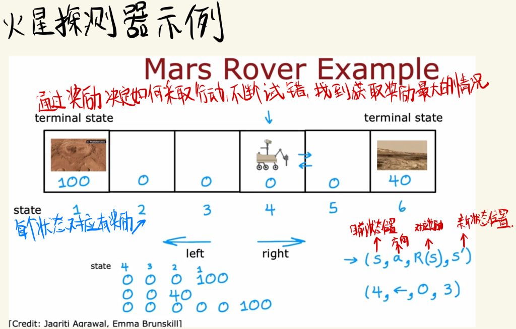 state是每个状态下面有对映的奖励。比如说火星探测器在状态1和6上面返回好的探测照片,就给予100和40的奖励。