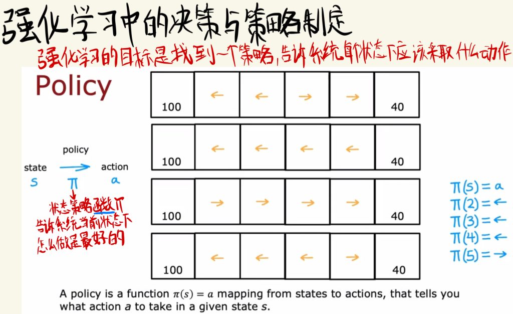 强化学习的目标是找到一个策略,告诉系统每个状态下应该采取什么动作。